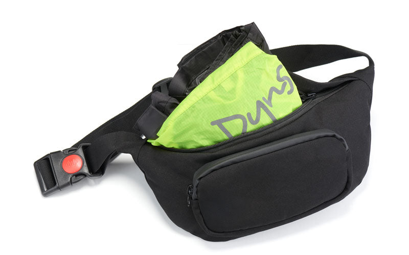 To address this, we’ve created DYNS AQUAKIT, a fanny pack-style bag with a rain suit inside. No need to check the weather forecast anymore – just take your Aquakit. You can stow your small belongings in the waterproof pocket, secure it with the special buckle lock and go for a chill ride, anytime.